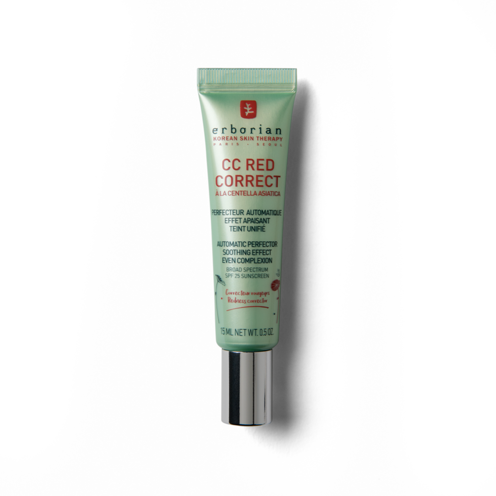 - Erborian CC Red Correct es un corrector de color verde iluminador que reduce instantáneamente la apariencia de rojeces, dejando la piel suave e hidratada. CC Red Correct es un corrector de color con un enfoque en el cuidado de la piel, potenciado por la Centella Asiática, un superingrediente reconocido por sus propiedades calmantes.